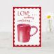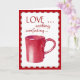 En röd hett mugg av te eller kaffe, med handtaget i form av ett halvt hjärta, den andra halvan reflekterad på själva mugg. En underbart subtil gåva till den speciella människan i ditt liv för Valentindagen, en födelsedag, en årsdag eller bara för att säga hej, jag saknar dig eller jag kärlek dig. Fantastiskt matchande kort, vykort, klistermärke, magnet, knapp, muspekare, påse, plattor, t-shirt.