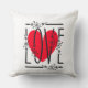 Röd hjärta & blommig text grafik modern & snygg kudde
