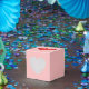 Röd hjärtillustration på rosafärgad bakgrund presentaskar
