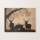 Förbrylla med "den röda hjortaftonsilhouetten" ett original- konstverk av "Cathy Sharpe" som målas i akryler, a-grupp av fullvuxen hankronhjort, betar i aftondimman