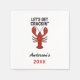 Mattema för nautiska, sommartid och havsmiljö. En röd hummer på vit bakgrund. Citat: Låt oss få crackin'Personalize och lägg till ett namn och år.