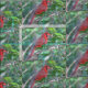 En belagd med tegel design som presenterar en fotografera av en ljus röd male huvudsaklig fågel.