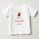 Söt jordgubbs första födelsedag t-shirt med en illustration av en röd jordgubbe och ett vackert typsnitt.