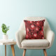 En färgfull julkudde med rött, med mönster av Juldekorationer, bubblor och glitter för att lägga till en verklig julstämning till firandet i år.