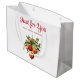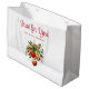 Giftväska med illustration av vintage stil. Tre röda jultomter omgivna av grönt och bär. Snyggtens återutformning.