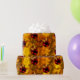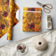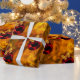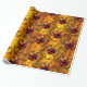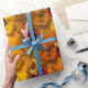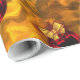 En fantastisk guldfärgad julomslutning papper med ett stort, snurrande mönster med olika knutar av guld. Sprid över guld-bakgrunden är ett mönster av skuggade röda Julgran-bubblor, var och en med en gyllene båge på ovansidan och små sprit av rött.