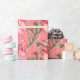 Land inslagna pappert i en underbar röd jul-bollar och röd och vit rand
