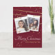 Ett stilrent vinrött julkort med gyllene geometriska band och linjer. Med två vita fotobildramar som hänger på de gyllene trådarna. Lägg till två av dina egna festliga bilder. Omgivna av små eleganta gyllene stjärnor.