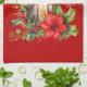 Röd jul Lantern Poinsettia och Gräs Kökshandduk
