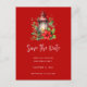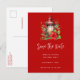 Spara vykortets datum med en mysigt julbild med ett rött ljus omgivet av gräs och en poinsettia och holly.