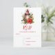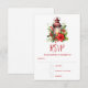 En OSA kort med en mysigt julbild med ett rött mönster omgivet av gräs och en poinsettia och holly