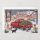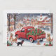 En julkort med en by med en röd lastbil och en julgran omgiven av en grupp lekande valpar. Denna design skapades av Debbie Quick från Debs Creative Images.