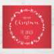 Röda God jul-mousserande vin-flaska-etiketter med vit löv dekoration och utbytbar text - du kan lägga till din familj namn, tryckt på röd bakgrund
