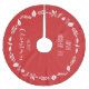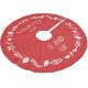 Röd God jul borstad polyester träd-kjol med vit löv dekoration och utbytbar text - du kan lägga till din familj namn, som är tryckt på röd bakgrund