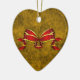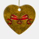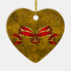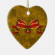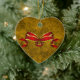 En söt julprydnad med ett rött band och ett band guld på guld.