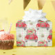 Denna ljusa och färglösa papper har en grönt och röd pläterad bakgrund. Det finns en mönster av söta röda bilar med en julkrans på framsidan och en sträng av julen ljus på framsidan. Bilarna är fyllda med julklappar. En roligt som är papper för både barn och vuxnor.