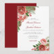 En elegant bröllopsinbjudan för ditt vinter- eller julbröllop med en arrangemang av röda akvarellblommor och inslag av vintergrönska. Anpassa med alla viktiga detaljer såsom brud och brudgummens namn, bröllopsdatum, tid och plats. Baksidan är koordinerad i rött.