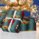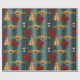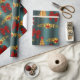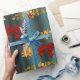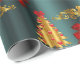 En färgfull julomslutning papper med ett mönster av rött och guld Juldekorationer med små snögubbar i rött sammet, stora rödbrödbögar, guldbrödda Julgranar med rött skum och krukor, golden holly lämnar med rött bär för att ge dina gåvor till silken en elegant och en speciell designer julberöring.