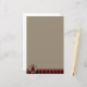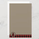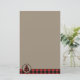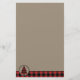 Den nedersta gränsen av denna lantliga julbrevpapper presenterar ett rött, och den svart silhouetten för buffelplädjulgranen som förläggas på en solbränna, cirklar banret. Cirklabanret förläggas överst av den matcha buffeltryckgränsen. Denna brevpapper matchar klistermärkear, returetiketter och andra brevpapperprodukter i vårt lager.
