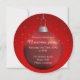 Den här festliga julfestinbjudan har en digitalt skapad röd julgranskula. Bakgrunden är en vacker röd gradient med några snöflingor. På andra sidan hänger ytterligare tre röda julgranskular på en silversträng.