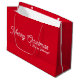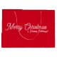 En röd julklapp med "julröd" färg. Det är önskemål god jul och glad helg.