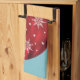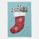 Desteis ursprungliga illustration av en festlig röd julklapp med två polkagrisar. Bakgrunden färg är blå.