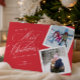 Röd julkort med 2-bildskollage i skriptstil