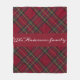 Mörkröd och grön julplädj flanellfilt med anpassning av familjenamn.
