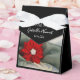 Röd julstjärna och pärlor på grönt vinterbröllop presentaskar