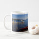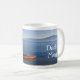 En röd kajak på sjön George i NY med de Adirondack bergen i avståndet är en underbar bakgrund för text. Skräddarsy denna mugg med något namn för en underbar gåva!