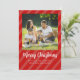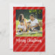 Röda ränder på framsidan och en röd kardinal sittande på en trägren på baksidan. Denna design har röda julrandiga foton, familjefoto bild 1 en, fantasifulla randiga enkelt modernt, botanisk röd kardinal björk träd, natur skogsmark fågel gren, trendig stilfullt kalligrafiskt typsnitt, fantasifull typsnitts text, julhälsningskort, jul foto kort, enkel elegans rolig festlig