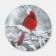 Den här magneten är ett val av perfekt för Bird and Nature älskare. Fågelmagneten har en röd kardinal i ett snö täckt träd. Det här röda fågelfotot togs på min snögård. Den här fågelmagneten finns i flera storlekar.