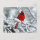 Det här fågeltemat vykort har en vacker röd kardinal på en snödag. Denna vackra vinterkardinalscen togs på min gård.