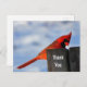 Ett tack som du visar med ett foto av en söt röd kardinal på en trästump.