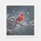 Röd kardinal vid Träd Gren i Snö Pappersservett