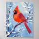Röd kardinal | Vinter Vattenfärg Högtid Affisch