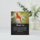 Ett extra speciellt tackkort för begravning att skicka ut till vänner och familj som har visat dig kärlek och stöd under din sorg. Detta kort är dubbelsidigt, med en bild av en röd kardinalfågel, ett tackmeddelande som kan anpassas och på baksidan kan du ladda upp ett foto av den avlidne med deras namn och levnadsår.