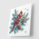 Förbättra din hemmadekoration med denna väggklocka som visar en bild av röda kardinalfåglar. Klockans design visar två röda kardinaler som sitter på en tallgren med tallkottar, vilket ger en känsla av värme och naturlig skönhet till alla utrymmen.