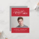 Fira din examen med denna eleganta examensfest-inbjudan med en svungande "Klass av"-kalligrafiskrift med året på en klassisk röd bakgrund bredvid en seniorporträtt ramad av tunna linjära accenter. Den grå baksidan har en vacker "Fira"-skript rubrik med en andra fotospot och alla dina festdetaljer. Fullständigt anpassningsbar text på båda sidor.