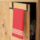Röd köksduk med randig trimning kökshandduk
