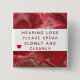 Röd, koppar och vit hörselförlust 2-tumsknappen är designad från en akrylfärgning. Den här 2-tumsknappen kan användas för att varna personer som du har svårt att höra. Jag designade detta med ett rött hjärta som en påminnelse om att du är älskad och för dem du talar med om att du uppskattar deras omtänksamhet gentemot dig. Det kommer att göra ge den andra personen uppmärksam på att vara speciell när man pratar. De är underbara som gåva till någon du känner som upplever hörselförlust.
