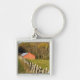 Röd ladugård och fencerow längs blåttkanten fyrkantig silverfärgad nyckelring