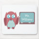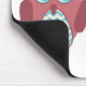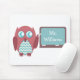 En mousepad för lärare som presenterar en illustration av ett rött ugglaanseende på en svart tavla. Ugglan har en blåttsparrebuk. Personifiera med ditt namn på den svart tavlan. Sök efter att matcha objekt på den rosa schoolhousen.