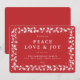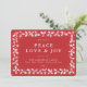 Röd Lino Tryck Julklingar+Blad Kant Platt Icke Fot Julkort