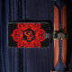 Röd lotusblommablomma Om på svart Bagagebricka