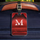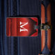 Röd märkre för bagage för gardinteaterMonogram Bagagebricka