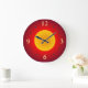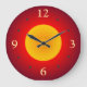 En slående röd med gul fullmåne i mitten. Komplett med svarta visare och siffror. Perfekt för människor som uppskattar färgglada klockor. zazzle.com.au/orientcourt har ett brett utbud av klockdesigner att välja mellan.