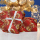 Att figurera pappert med ett rött och guldfärgat rand är perfekt för gåvor.