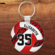Den här sportliga flickans nyckelkedja med volleyball har en vild zebra ränder accent mönster på fyra av volleyballpanelerna - zebra ränder-panelerna har en röd bakgrund som står i kontrast till de resterande solida vita volleyball-panelerna - anpassa med spelare namn och jersey-nummer - efter katz_d_zynes