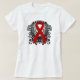Röda band med vinkla vingar och filigree mönster. Det röda bandet är förknippat med AIDS Awareness, Diamond Blackfan Anemia Awareness, Epidermolysis Bullosa Awareness, Evans Syndrome Awareness, Factor XI Deficiency Awareness, Inhalant Abuse Awareness, Long QinT Syndrome Awareness, Project Red Flagga Awareness, Sniffing Abuse Awareness, Supraventricular Tacheness Ykardi, trombotisk trombocytopen Purpura- medvetenhet, medvetenhet om tuberkulos, medvetenhet om Von Willebrands sjukdom- medvetenhet och Wolff Parkinson White Awareness. Månatliga observationer är medvetenhet om Marfan Syndrome, medvetenhet om hjärtsjukdom, medvetandegörande om hjärtsvikt, medvetandegörande om medfödd hjärtsjukdom, medfödd medvetenhet om hjärtsjukdom, medfödda hjärtedefekter Medvetenhet och medvetenhet om kardiovaskulär sjukdom i februari. Medvetenhet om missförhållanden, MADD (Mammor MOT Drunk Driving), medvetenhet om hur man kör under Influence Awareness, och utbildning om narkotikamissbruk/Vecka om narkotikamissbruk/DARE Awareness / Red Ribbon Week i april. Medvetenhet om blödarsjuka i mars. Medvetenhet om stroke och hög blodtrycksmedvetenhet i maj. Ökad medvetenhet om hypertoni i november. AIDS Medvetenhet, hiv-medvetenhet, Aplastisk anemi-medvetenhet och benmärgsmedvetenhet i december.